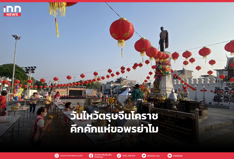 บรรยากาศตรุษจีนโคราช ชาวไทยเชื้อสายจีน แห่กราบไหว้ขอพรย่าโม และสิ่งศักดิ์สิทธิ์คู่บ้านคู่เมืองกันคึกคัก