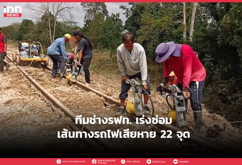 ทีมช่างรฟท.เร่งซ่อมเส้นทางรถไฟเสียหาย22จุด