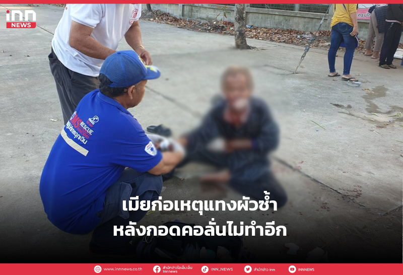เมียก่อเหตุแทงผัวซ้ำ หลังกอดคอลั่นไม่ทำอีก อ้างแย่งมีดป้องกันตัว ขณะชาวบ้านหวั่นอันตราย