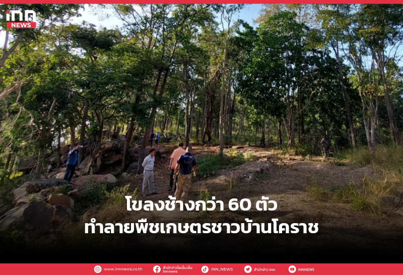 โขลงช้างกว่า 60 ตัวทำลายพืชเกษตรชาวบ้านโคราช