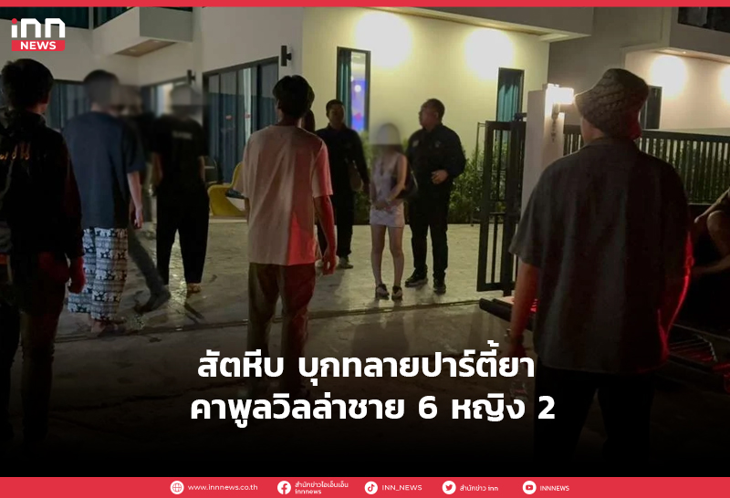สัตหีบ บุกทลายปาร์ตี้ยา คาพูลวิลล่าชาย6หญิง2