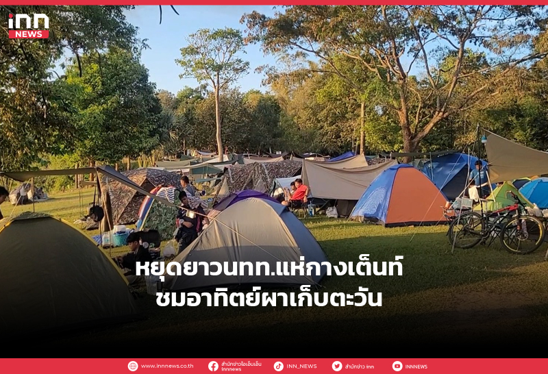 หยุดยาววันรัฐธรรมนูญ นักท่องเที่ยวแห่พาครอบครัวกางเต็นท์กันคึกคัก พักแรมชมพระอาทิตย์ผาเก็บตะวัน วังน้ำเขียว
