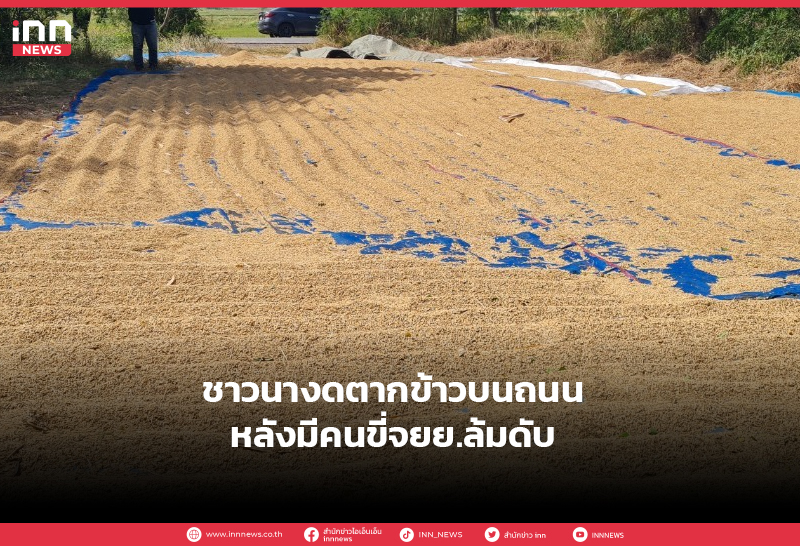 ชาวนางดตากข้าวบนถนนหลังมีคนขี่จยย.ล้มดับ