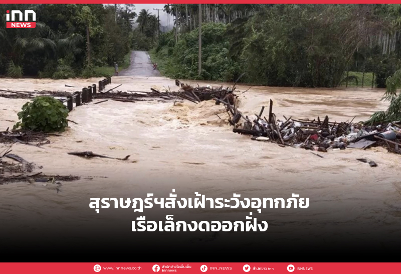 สุราษฎร์ฯเตือนปชช.เฝ้าระวังน้ำท่วมฉับพลัน-น้ำป่าไหลหลาก ขณะเรือเล็กควรงดออกจากฝั่ง