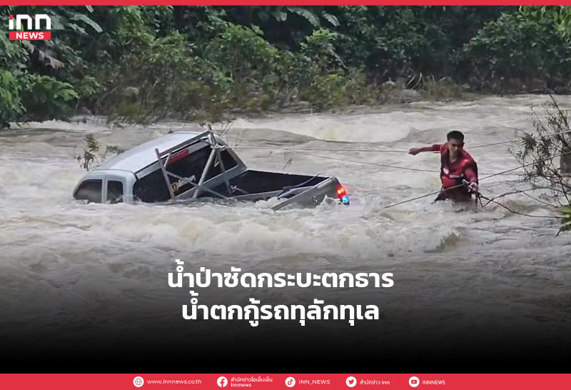 น้ำป่าซัดกระบะตกธารน้ำตกกู้รถทุลักทุเล