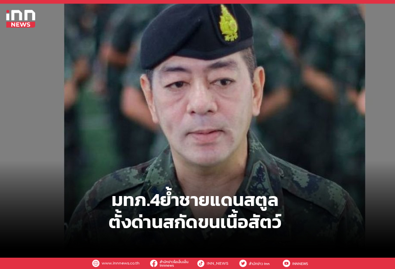 แม่ทัพภาค 4 ย้ำชายแดนสตูล จัดทหาร ตั้งจุดลาดตระเวนใกล้เส้นช่องทางธรรมชาติ สกัดกลุ่มขนเนื้อสัตว์ ลักลอบเข้าไทย