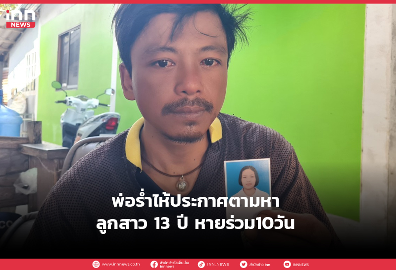 พ่อร่ำไห้แทบขาดใจ ประกาศตามหาลูกสาววัย 13 ปี หายตัวไปจากบ้านเกือบ 10 วัน หวั่นเกิดอันตรายกับลูกสาว