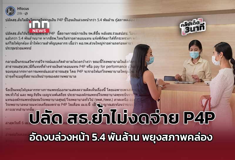 ปลัด สธ.ย้ำไม่งดจ่าย P4P อัดงบล่วงหน้า 5.4 พันล้าน