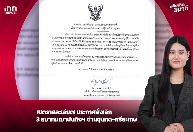เปิดรายละเอียด! ประกาศสั่งเลิก 3 สมาคมฌาปนกิจฯ ด่านขุนทด-ศรีสะเกษ
