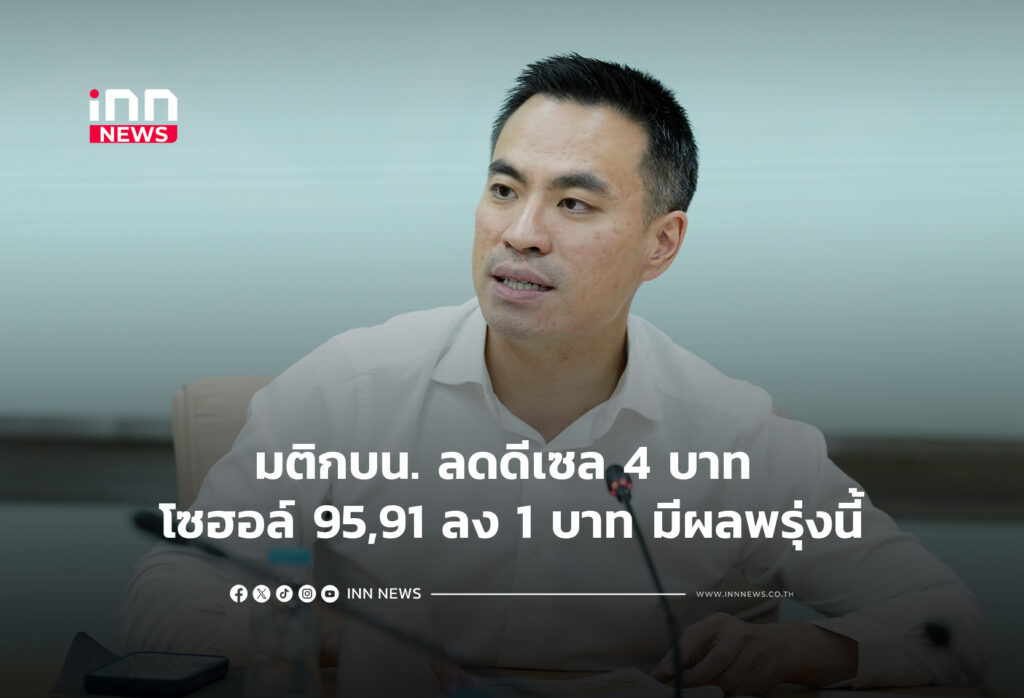 มติกบน.ลดดีเซล4บาท-โซฮอล์95,91ลง1บาท