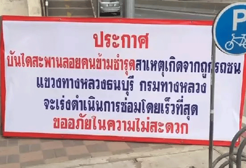 กรมทางหลวง เร่งซ่อมสะพานคนข้ามถนนพระราม 2 ขาเข้า หลังโดนรถชนทำโครงสร้างบันไดด้านล่างเสียหาย