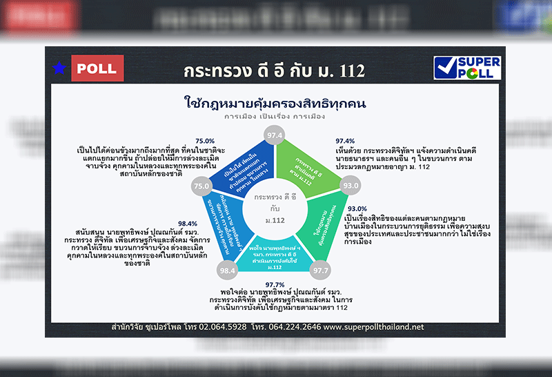 ซุปเปอร์โพลเผย ปชช. ส่วนใหญ่คิดเป็นร้อยละ 97.4 เห็นด้วยที่ "รมว.พุทธิพงศ์" ใช้ม.112