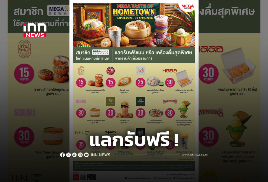 เมกาบางนา ชวนสัมผัสรสชาติความอร่อยที่คุ้นเคยในแคมเปญ “MEGA TASTE OF HOMETOWN” สมาชิกเมกา สไมล์ รีวอร์ด แลกรับฟรี ตั้งแต่วันที่ 1 – 30 เมษายน 2569 ที่ศูนย์การค้าเมกาบางนา