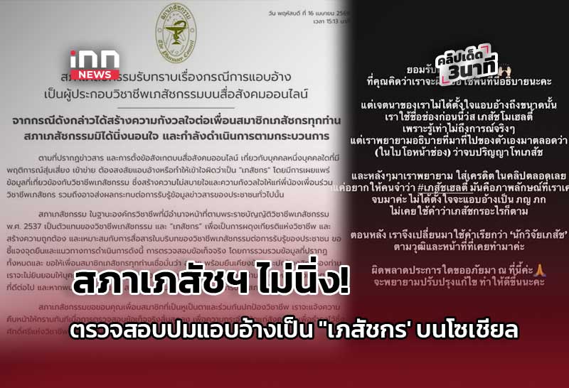 สภาเภสัชฯ ไม่นิ่ง! ตรวจสอบปมแอบอ้างเป็น “เภสัชกร” บนโซเชียล