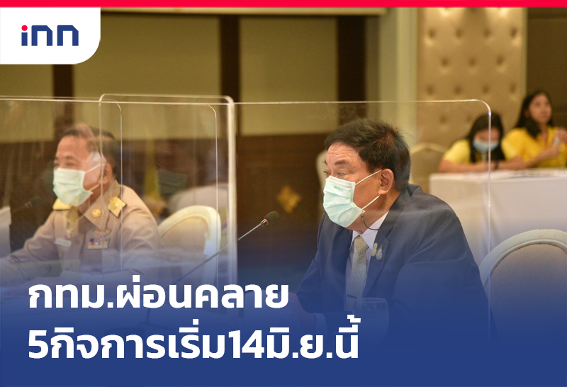 กทม. ผ่อนคลายมาตรการเปิดกิจการ/กิจกรรม 5 ประเภท เปิดได้ 14 มิ.ย. - ส่วนสถานประกอบการประเภทอื่นยังปิดต่อไป