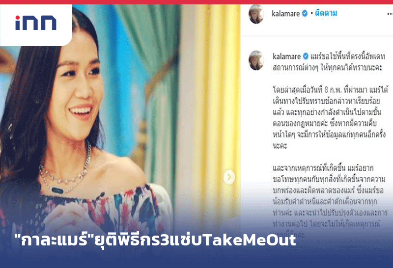 "กาละแมร์"ประกาศยุติการทำหน้าที่พิธีกรรายการ3แซ่บและTake Me Out Thailand