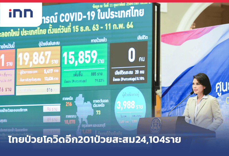 ศบค. พบไทยป่วยโควิดรายใหม่ 201 คน ในประเทศ 185 ตปท. 16 รวมสะสม 24,104 ราย