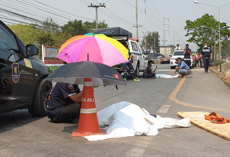 หนุ่มใหญ่ขับกระบะพาหลานไปเที่ยวทะเลข้ามแยกบ้านบึงถูกกระบะบรรทุกปุ๋ยชนดับคาที่ 2 ศพ