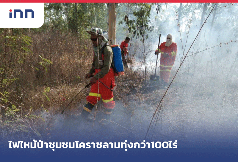 ไฟไหม้ป่าชุมชนโคราชลามทุ่งไปกว่า100 ไร่