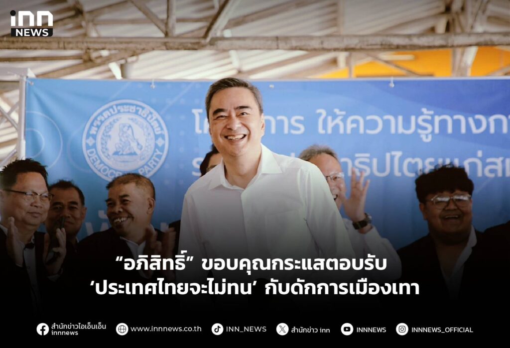 “อภิสิทธิ์” ขอบคุณกระแสตอบรับ ‘ประเทศไทยจะไม่ทน’ กับดักการเมืองเทา