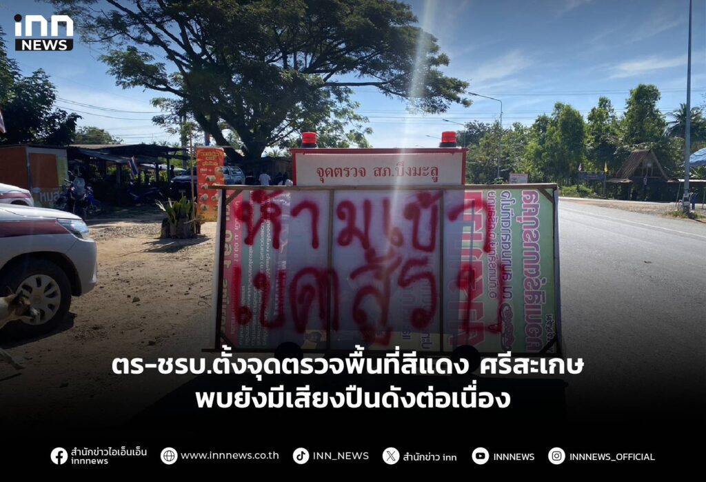 ตร-ชรบ.ตั้งจุดตรวจพื้นที่สีแดง ศรีสะเกษ พบยังมีเสียงปืนดังต่อเนื่อง