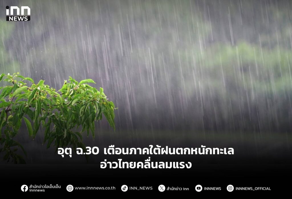 อุตุ ฉ.30 เตือนภาคใต้ฝนตกหนักทะเลอ่าวไทยคลื่นลมแรง