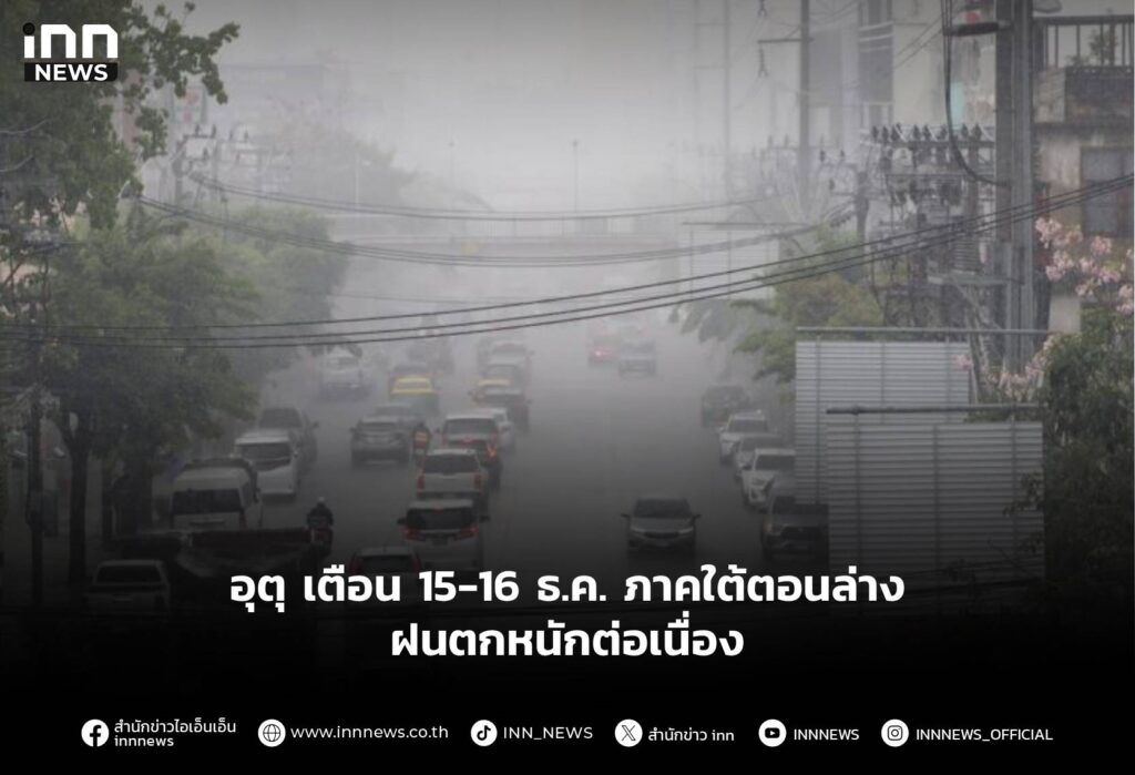 อุตุ เตือน 15-16 ธ.ค. ภาคใต้ตอนล่างฝนตกหนักต่อเนื่อง