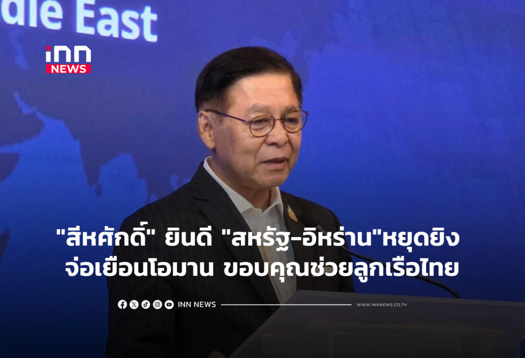 "สีหศักดิ์" ยินดี "สหรัฐฯ-อิหร่าน" บรรลุข้อตกลงหยุดยิง หวังทุกฝ่ายเจรจาจริงจังสร้างสันติภาพยั่งยืน - เผยเตรียมเยือนโอมาน 15-16 เม.ย.นี้ ขอบคุณช่วยลูกเรือไทย พร้อมขอโอมานเปิดทางเรือไทยผ่านช่องแคบฮอร์มุซห้วงหยุดยิง 2 สัปดาห์ - เตือนคนไทยในตะวันออกกลางรีบใช้โอกาสนี้กลับไทย