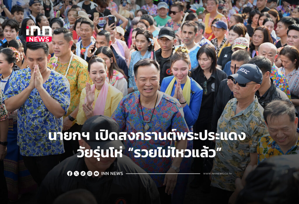 นายกฯอนุทิน เปิดงานสงกรานต์พระประแดง สวมชุดเสื้อลายดอก สรงน้ำพระ-รดน้ำดำหัวผู้ใหญ่ พร้อมเล่นสะบ้าร่วมกับภริยา-กวนกาละแม ก่อนเดินเล่นน้ำร่วมประชาชน เจอวัยรุ่นโห่ “รวยไม่ไหวแล้ว” สนั่น บอกทราบข่าว “ทรัมป์” แล้ว ต้องระมัดระวัง ขณะหน่วยปฏิบัติการพิเศษเข้มอารักขา