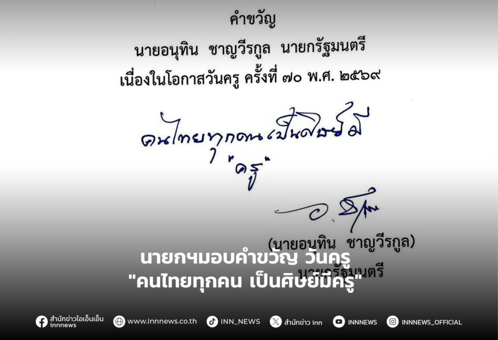 นายกฯมอบคำขวัญ วันครูแห่งชาติ 2569 คนไทยทุกคนเป็นศิษย์มี ‘ครู’