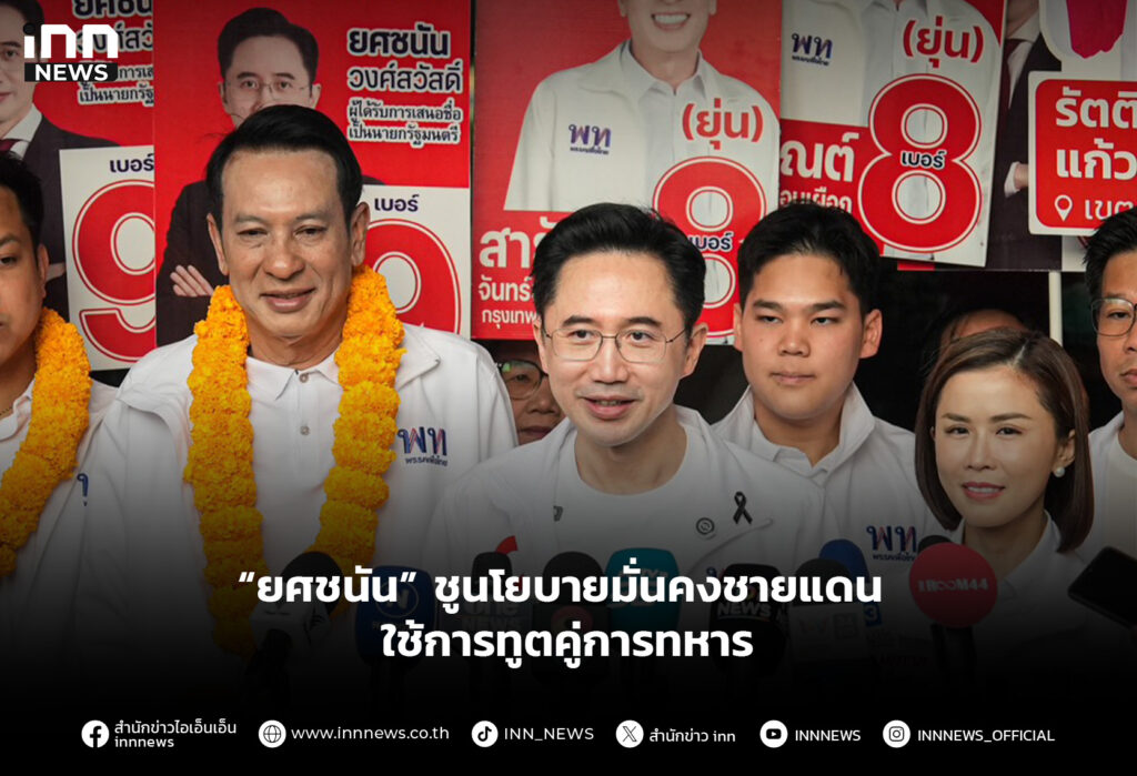 “ยศชนัน” ชูนโยบายด้านความมั่นคงชายแดน ใช้การทูตคู่การทหารป้องกันภัยคุกคาม บอกหากเป็นรัฐบาลไม่ตัดงบ ย้ำให้ความสำคัญกับอธิปไตยพร้อมหนุนมีกำลังพลที่เข้มแข็ง-เกณฑ์ทหารต้องทำให้ถูกสัดส่วน