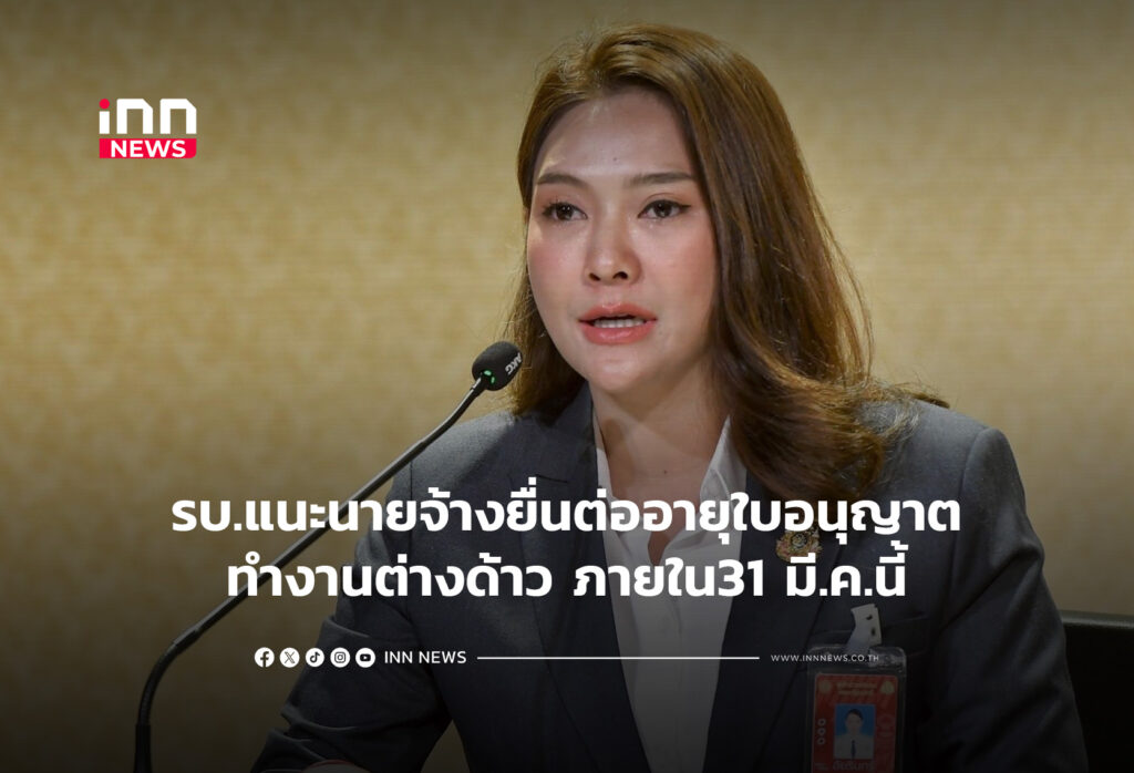 รบ.แนะนายจ้างยื่นต่ออายุใบอนุญาตทำงานต่างด้าว ภายใน31 มี.ค.นี้
