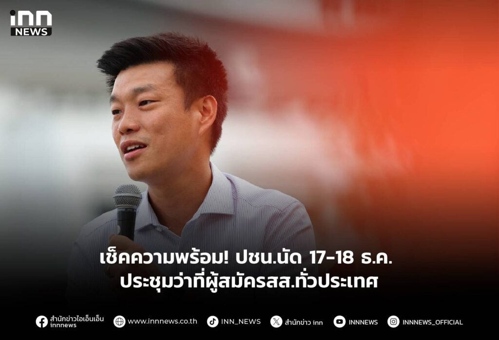 เช็คความพร้อม! ปชน.นัด 17-18 ธ.ค. ประชุมว่าที่ผู้สมัครสส.ทั่วประเทศ