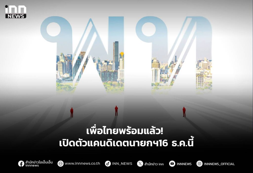 เพื่อไทย จ่อเปิดตัวแคนดิเดตนายกรัฐมนตรี 16 ธันวาคมนี้ ชูวิสัยทัศน์ “ยกเครื่องประเทศไทย เพื่อไทยทำได้” ตอบโจทย์เศรษฐกิจ-โครงสร้างพื้นฐาน-คุณภาพชีวิต บนหลักคิดวิทยาศาสตร์