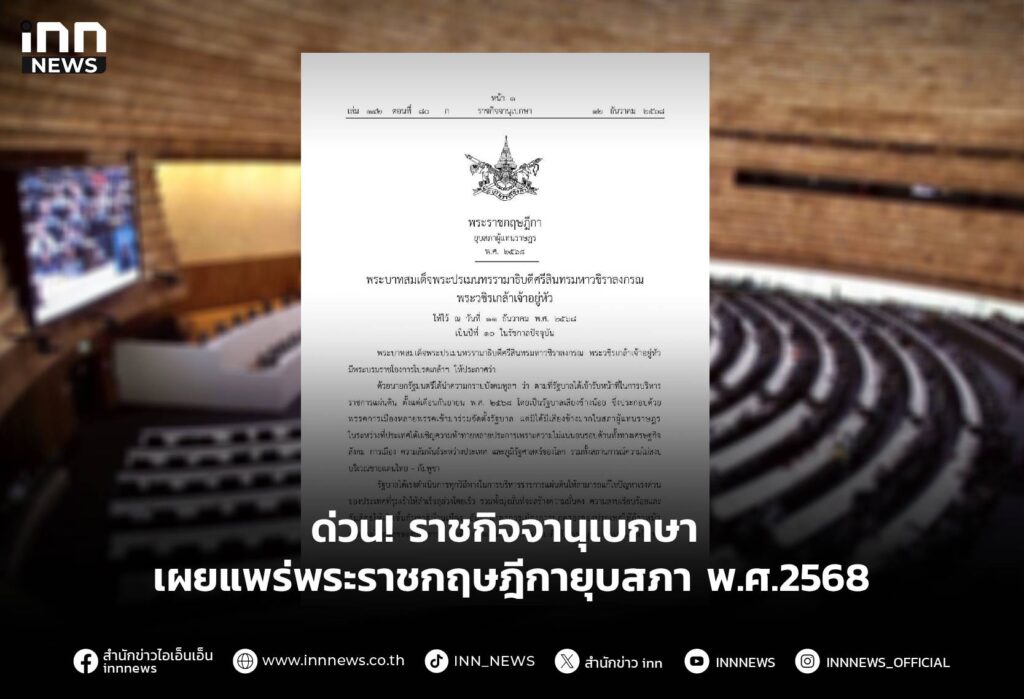 ด่วน! ราชกิจจานุเบกษา เผยแพร่พระราชกฤษฎีกายุบสภา พ.ศ.2568