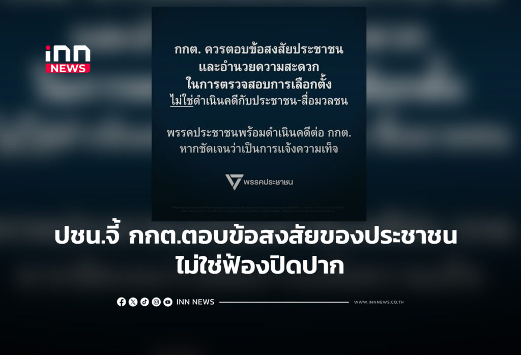 ปชน.จี้ กกต.ตอบข้อสงสัยของประชาชน ไม่ใช่ฟ้องปิดปาก