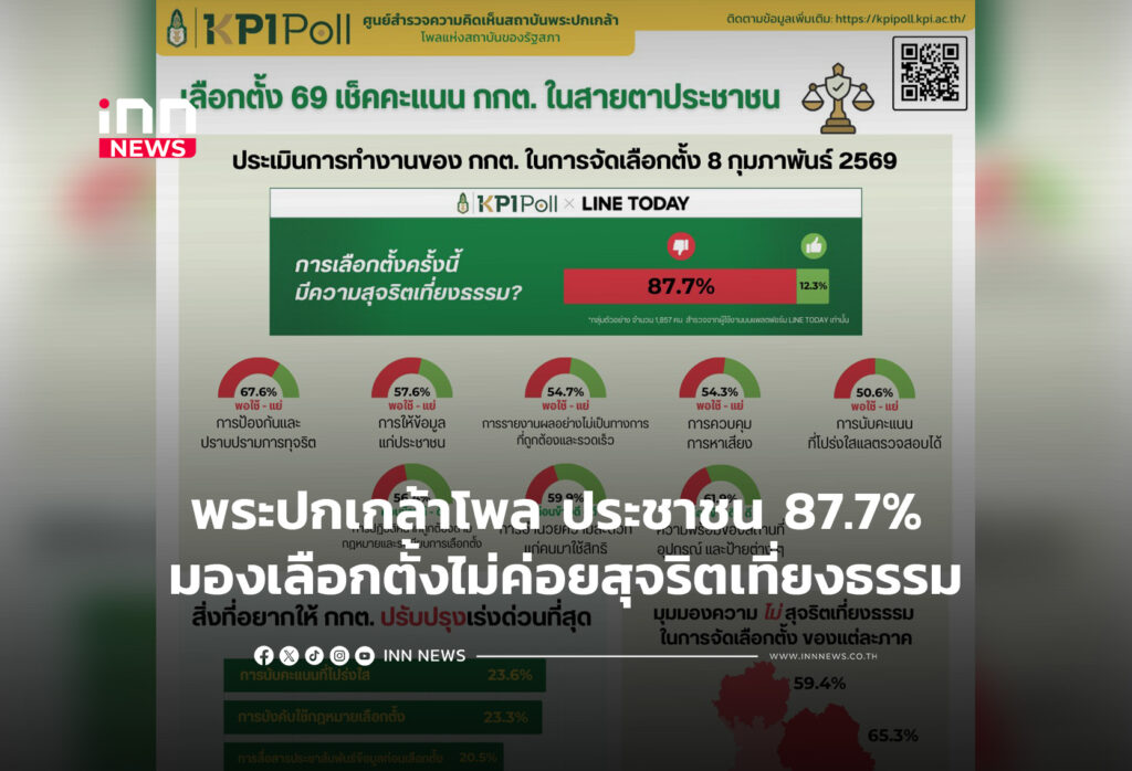 พระปกเกล้าโพล ประชาชน 87.7% มองเลือกตั้งไม่ค่อยสุจริตเที่ยงธรรม จี้ปรับปรุงการนับคะแนน