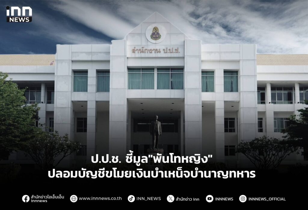 ป.ป.ช. ชี้มูล”พันโทหญิง” ปลอมบัญชีขโมยเงินบำเหน็จบำนาญทหาร