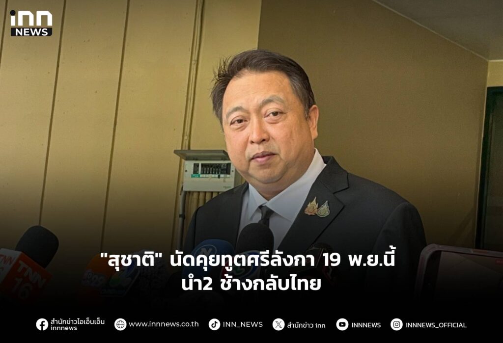 "สุชาติ" นัดคุยทูตศรีลังกา 19 พ.ย.นี้ คุยแนวทางขอนำ “พลายประตูผา” และ“พลายศรีณรงค์” กลับประเทศไทย ใช้หลักความเข้าใจ-เห็นใจ ย้ำนายกรัฐมนตรีให้ความสำคัญเรื่องนี้