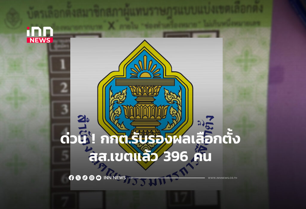 ด่วน ! กกต.รับรองผลเลือกตั้ง สส.เขตแล้ว 396 คน