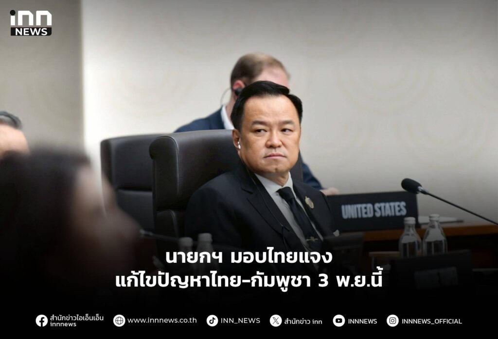 นายกฯ มอบไทยแจงแก้ไขปัญหาไทย-กัมพูชา 3 พ.ย.นี้