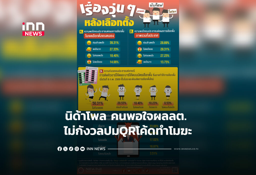 นิด้าโพล คนพอใจผลเลือกตั้ง ไม่กังวลปมQRโค้ดทำโมฆะ มองพรรคปั่นโซเชียลชี้นำช่วงการหาเสียง