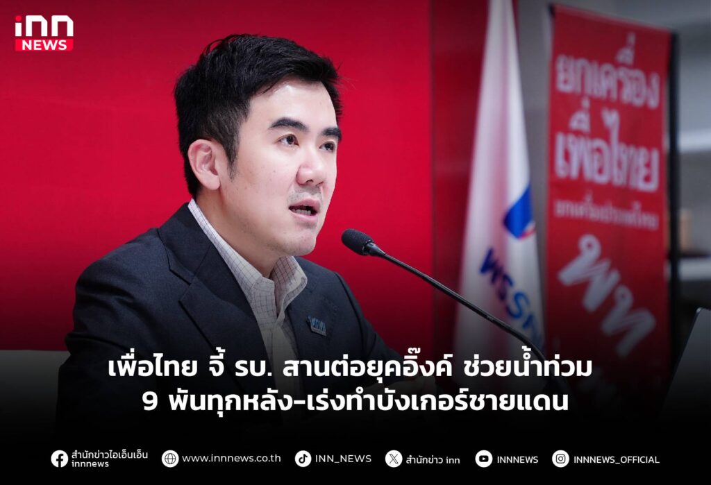 เพื่อไทย จี้ รบ. สานต่อยุคอิ๊งค์ ช่วยน้ำท่วม 9 พันทุกหลัง-เร่งทำบังเกอร์ชายแดน
