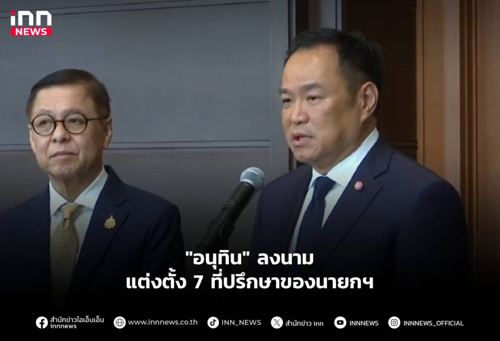 “อนุทิน” ลงนามแต่งตั้ง 7 ที่ปรึกษาของนายกฯ