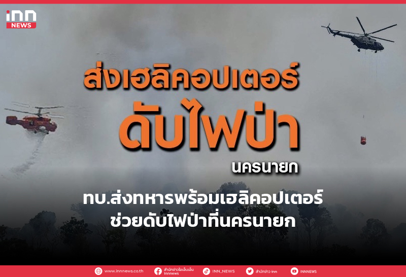 ทบ.ส่งทหารพร้อมเฮลิคอปเตอร์ช่วยดับไฟป่าที่นครนายก