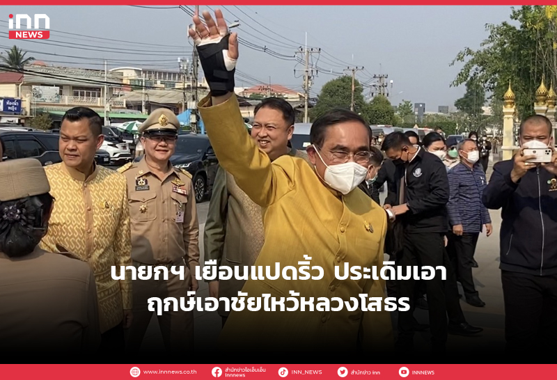 นายกฯเยือนแปดริ้ว ประเดิมเอาฤกษ์เอาชัยไหว้หลวงโสธร พบเด็กเก่า พปชร.-ว่าที่ผู้สมัคร รทสช.รอรับ บอกมือเจ็บให้ ปชช.แตะนิ้วแทน