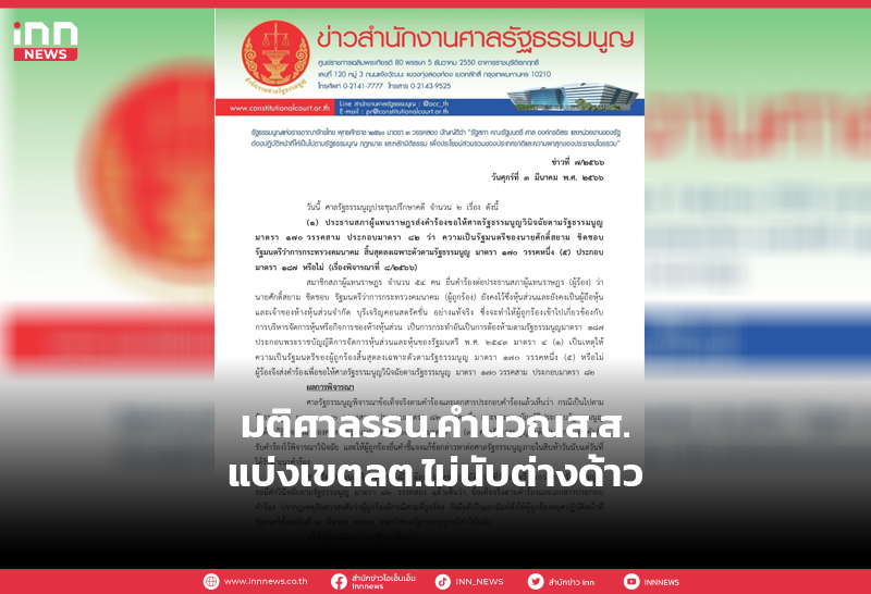 มติศาลรธน.คำนวณส.ส.แบ่งเขตลต.ไม่นับต่างด้าว