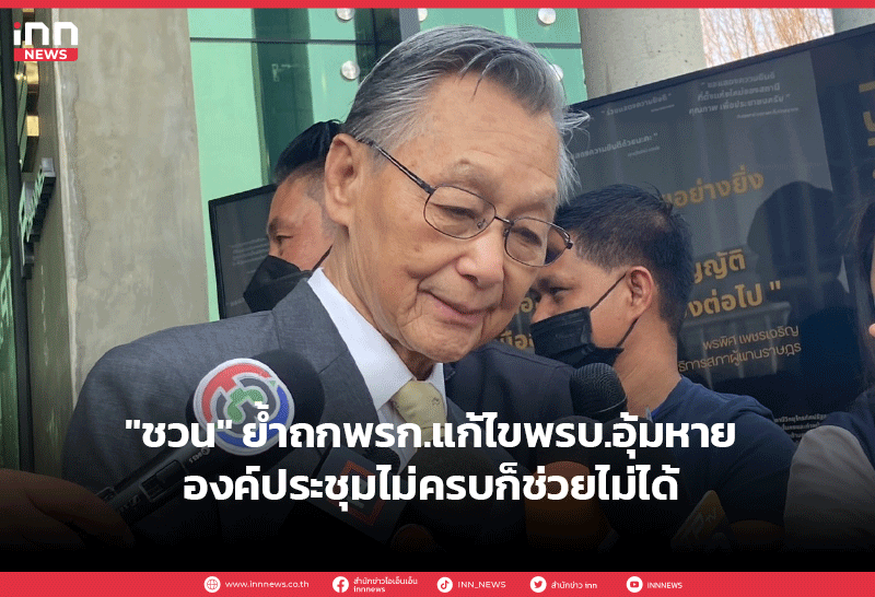 "ชวน" ย้ำ ถก พรก.แก้ไข พรบ.อุ้มหาย รัฐบาลต้องรักษาองค์ประชุม ไม่ครบก็ช่วยไม่ได้ ถ้าไม่ผ่าน ก็คือไม่ผ่าน ชี้ช่องหากใครสงสัย เข้าชื่อยื่นศาล รธน.ได้