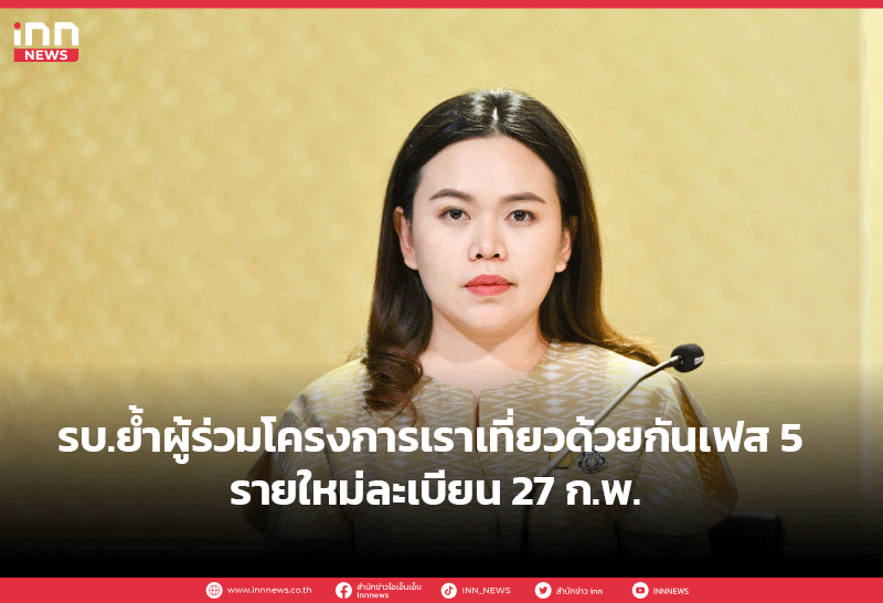 อย่าลืมนะ! ผู้ร่วมโครงการเราเที่ยวด้วยกันเฟส5 รายใหม่ เริ่มลงทะเบียนรับสิทธิผ่านเว็บไซต์ 27 ก.พ. ก่อนจองที่พักตั้งแต่ 7 มี.ค. เป็นต้นไป