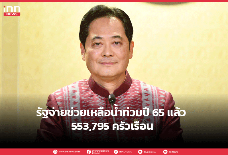 รัฐจ่ายเงินช่วยเหลือน้ำท่วม ปี 65 แล้ว 553,795 ครัวเรือน 3,503 ล้านบาท พร้อมขยายเวลาช่วยเหลือ ให้แล้วเสร็จภายใน 90 วัน ยึดหลักเกณท์ ครอบคลุม โปร่งใส และเป็นธรรม